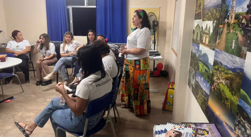 Curso de criação e contação de histórias realizado em parceria com municípios, promovendo formação cultural, incentivo à leitura e valorização da expressão artística.